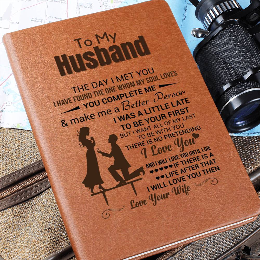Gift For Husband, Vegan Leather Ruled Notebook Journal, 100 Sheets, A5 Size Book - The Day I Met You