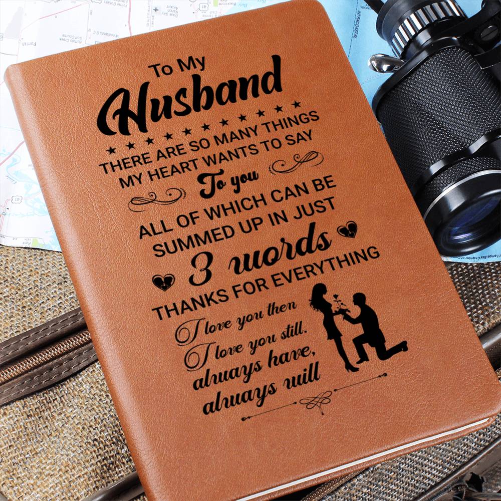 Gift For Husband, Vegan Leather Ruled Notebook Journal, 100 Sheets, A5 Size Book - Three Words