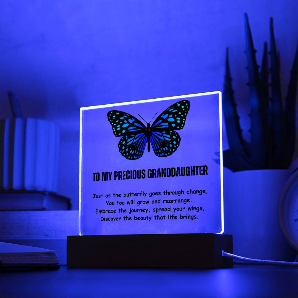 Gift for Granddaughter, Premium Acrylic Keepsake on Wooden Base with Built-in Colorful LED Lights