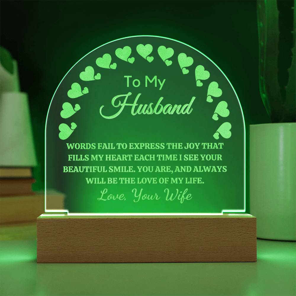 Gift for Husband, Engraved Premium Domed Acrylic Keepsake with Built-in LED Lights - Love of My Life