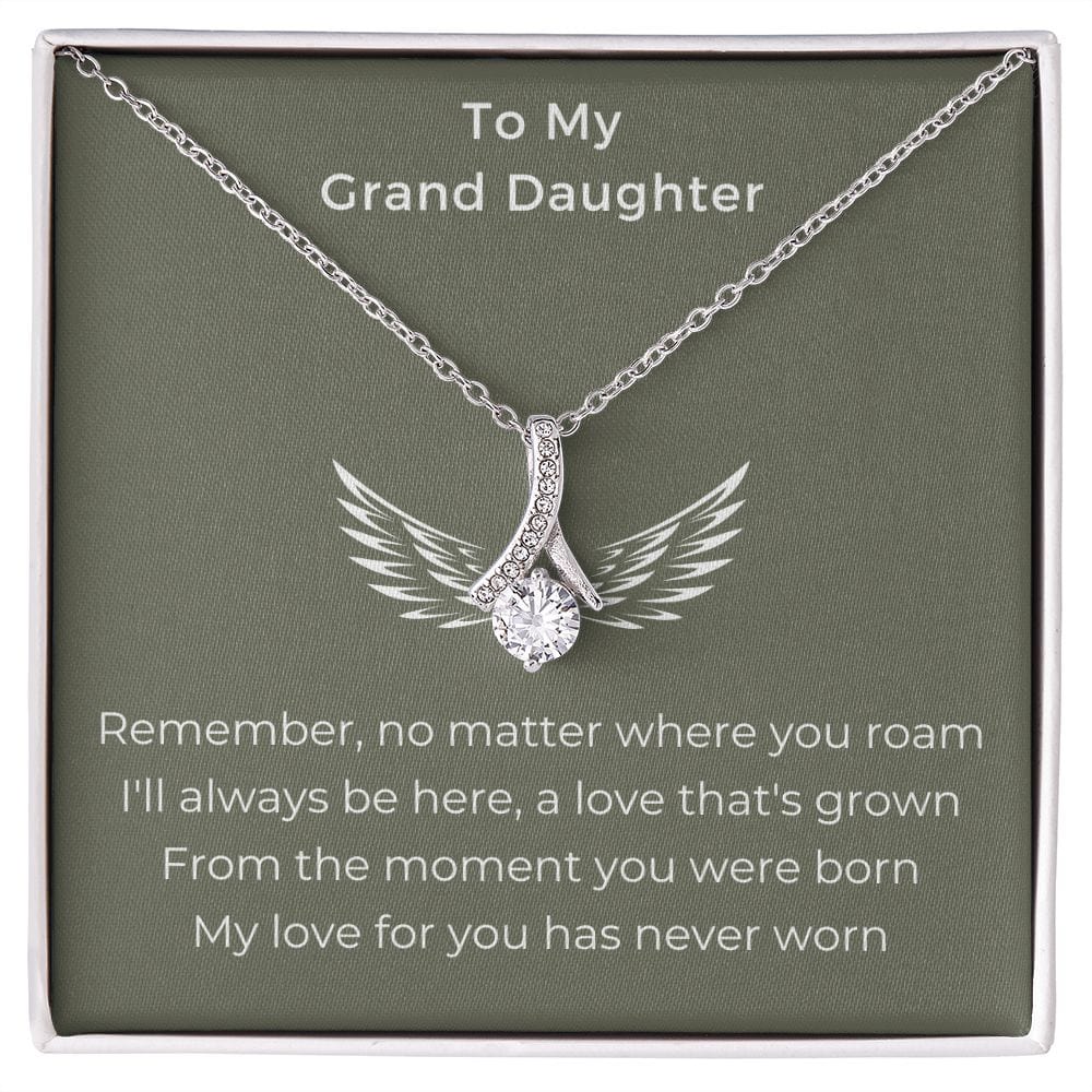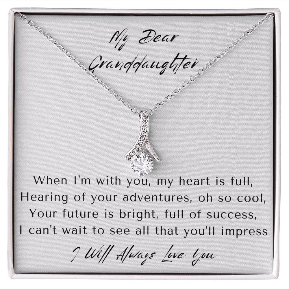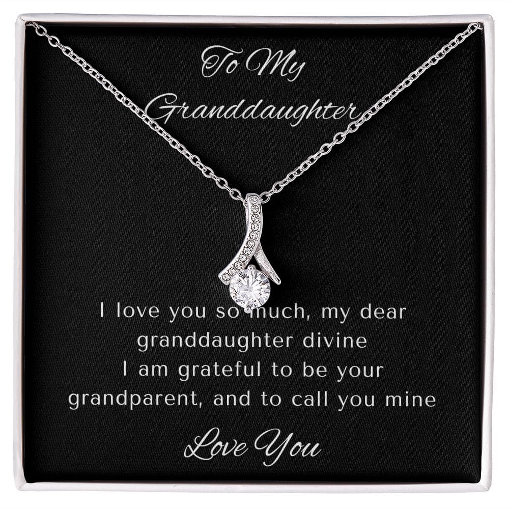 Granddaughter Gifts From Grandma, Granddaughter Birthday Message Card Necklace From Grandmother or Grandpa, Alluring Beauty Necklace Present with Message Card and Gift Box