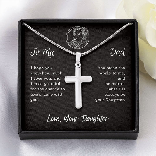 Gift For Dad, Faith Cross Necklace with Gift Box and Heart Warming Message Card, Made in the USA