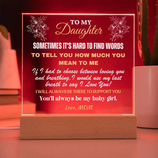 Gift for Daughter, Premium Acrylic Keepsake with Built-in LED Lights - Sometimes It's Hard
