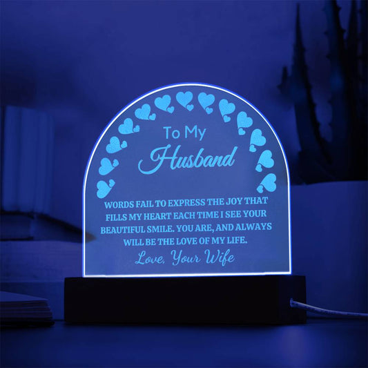 Gift for Husband, Engraved Premium Domed Acrylic Keepsake with Built-in LED Lights - Love of My Life