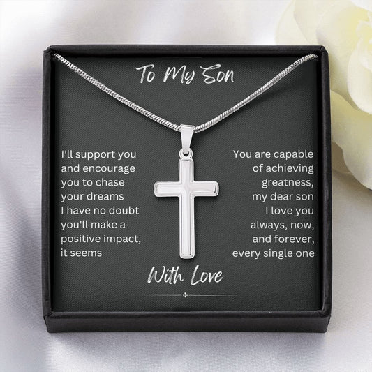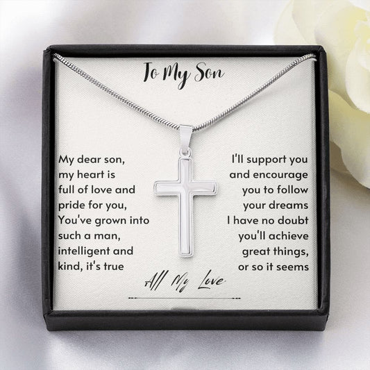To My Son from Mom, Son Gifts from Mom and Dad, Mother and Son Necklace, Birthday Gift For My Son Graduation Faith Cross Necklace Present