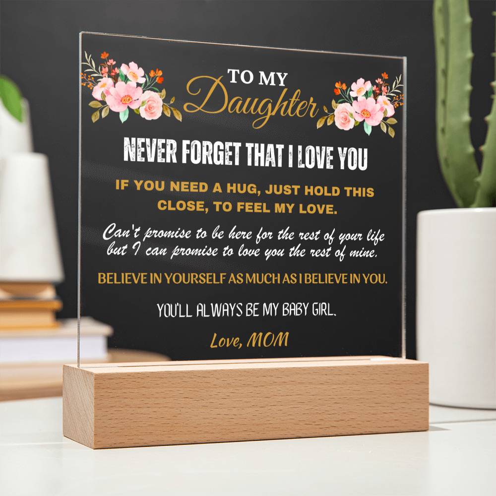 Gift for Daughter, Premium Acrylic Keepsake with Built-in LED Lights - Never Forget That I Love You