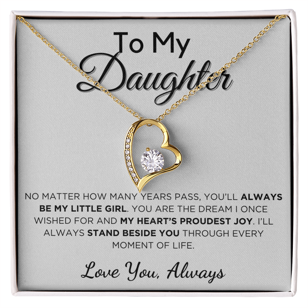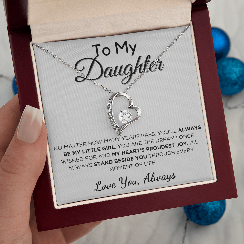 Crafted with premium materials and a radiant heart-shaped pendant, this necklace symbolizes endless love and pride. Perfect for birthdays, graduations, or simply to remind her she’ll always be your little girl.